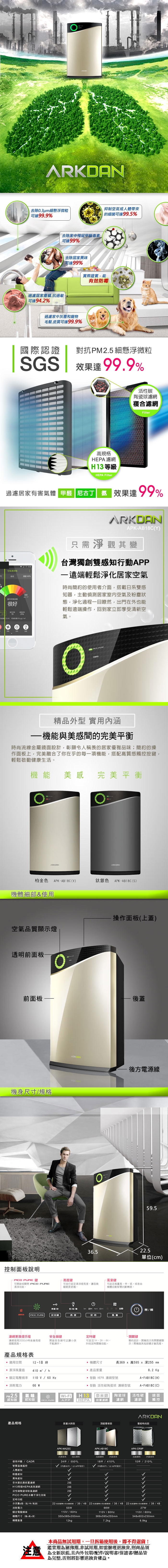 台灣獨創智慧APP設計 享受好空氣無時差 SGS認證 對抗PM2 5 完勝過濾99 9 SGS認證 除甲醛 香菸 異味 過濾效果達99 品牌 ARKDAN型號 APK AB18C種類 售價:11900 我要購買