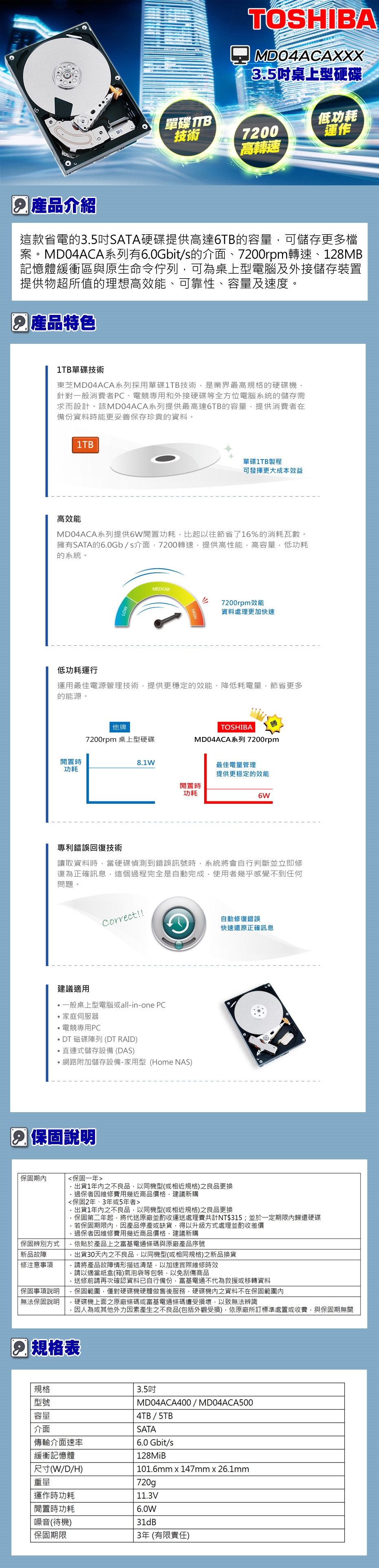 7 200 RPM 128MB緩衝記憶體 單碟1TB技術 先進格式4K磁區配置 具備專利錯誤回復技術 適用全方位電腦系統使用 品牌 TOSHIBA東芝型號 MD04ACA600硬碟類型 售價:5588 我要購買