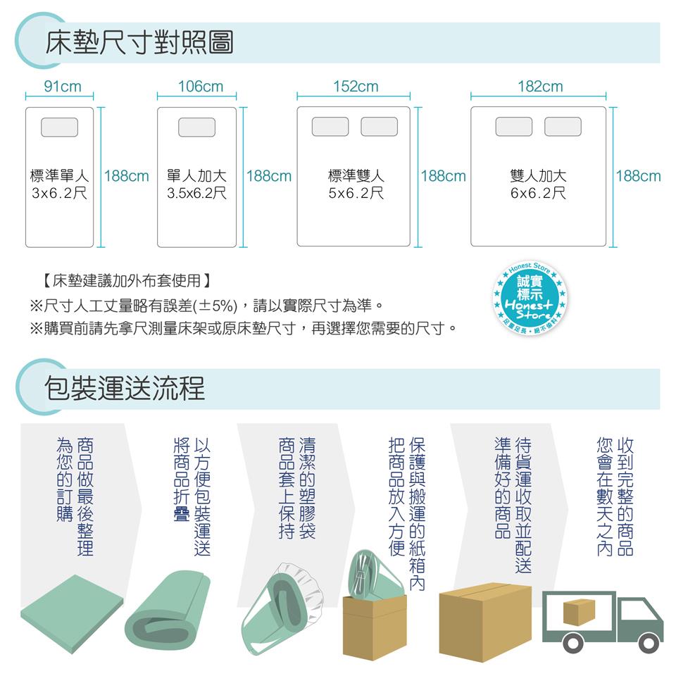 我要購買 全床採用美國道爾進口原料 全床台灣生產 使用日本竹炭添加技術 超優觸感的吸濕排汗透氣表布 整套含 8cm雙人床墊x1 商品尺寸 床墊單人 3 6 2尺長188CM 寬90CM厚8CM 雙人 5 |