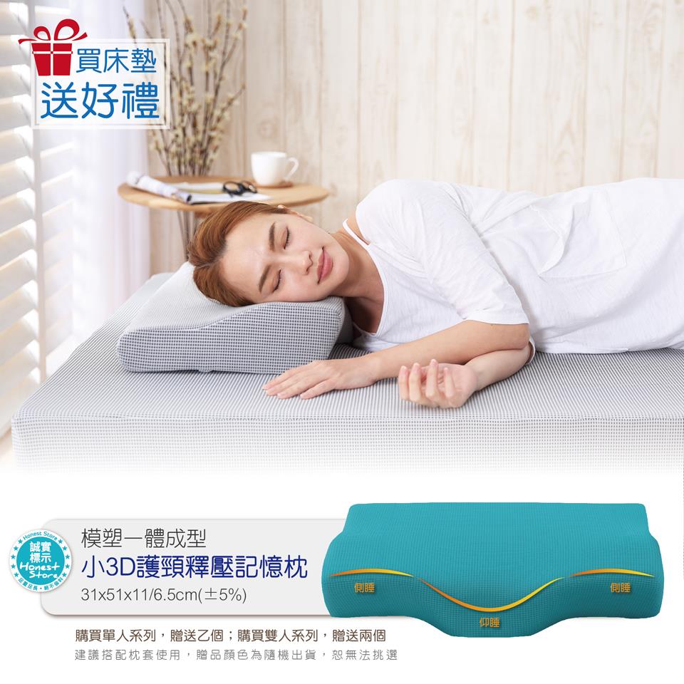 商品規格 規格 : 雙人加大6尺 類型 : 記憶床墊 參考軟硬度 : 適中 尺寸 (公分) : 182*188*3cm厚(±5%) 材質說明 : 3cm一體成型記憶綿密度35kg/m3(±5%)+8cm支撐綿密度22kg/m3(±5%) 重量 : 7.9KG 顏色 : 灰色系, 綠色系, 紫色系 產地 : 台灣 偏遠地區說明 : - 贈品 : 贈品1 品名: House Door 小3D護頸紓壓記憶枕 尺寸: 31×51×11/6.5cm(±5%) 布套: 超吸濕排濕表布(100%聚酯纖維) 顏色: 贈品顏色為隨機出貨 恕無法指定挑選 產地: 台灣製造 贈品2 品名: House Door 個人專用法萊絨毯 尺寸: 136×197cm(±5%) 材質: 100%聚酯纖維 顏色: 贈品為隨機出貨 恕無法指定花色 產地: 中國 單人系列(單人或單人加大) 記憶枕送1入+法萊絨毯送1件 雙人系列(雙人或雙人加大) 記憶枕送2入+法萊絨毯送2件 備註 : 網頁產品因拍攝關係,與實品略有差異,實品顏色更佳 。產品圖僅供參考。 體驗說明 使用方法說明 因每台螢幕皆有色彩差異,實品顏色更佳,產品圖僅供參考,請以收到實品為準。 注意事項 【注意事項】 1.辦理商品退貨時,商品如有贈品或配件,麻煩請一併寄回,否則視同缺件無法受理。商品弄髒汙損、損壞,無法接受退換貨。 2.商品圖檔顏色因電腦螢幕設定差異會略有不同,以實際商品顏色為準 ,商品為主,不含圖片情境呈現之配件及擺飾品等未註明品項。 3.床墊或記憶枕本身皆有搭配布套 建議可再自行包覆床包或保潔墊使用以延長布套與床墊的使用壽命